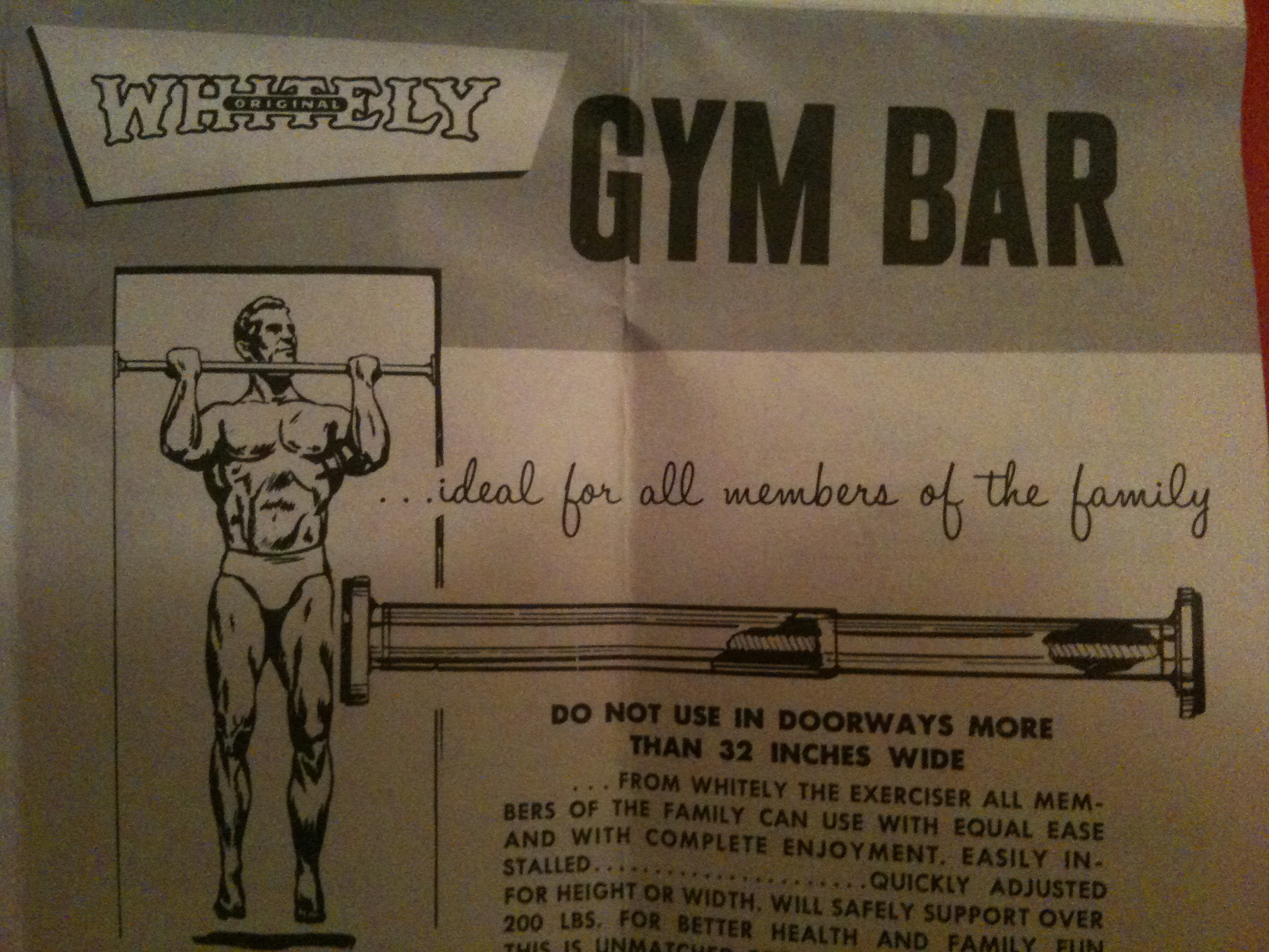 Verdict? The Jiffy Gym was a dud. Could use it to hang plants. The packaging was mesmerizing, however and a little research was in order. It appears Whitely Gyms offered a large array of classic home gym equipment throughout the 1960’s and early 70’s, bizarre precursors to the fitness props and home gym toys of today.